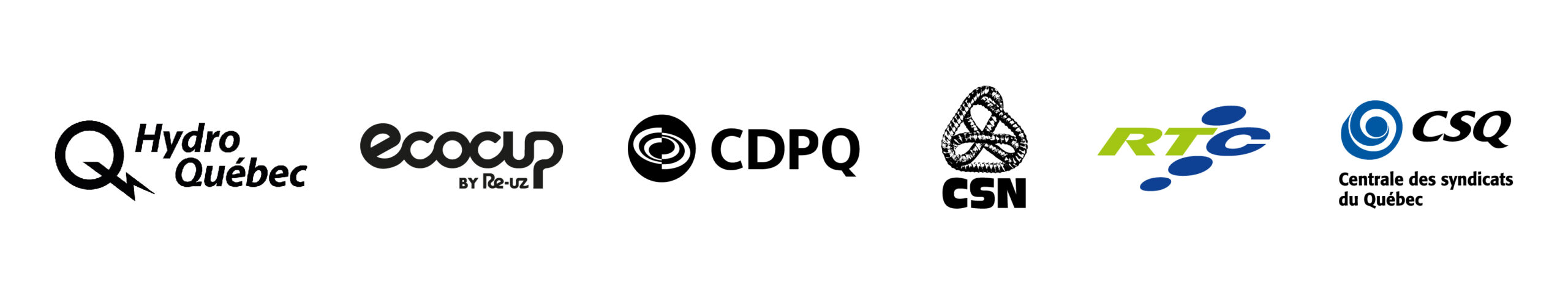 Finalement, nous tenons à remercier nos partenaires qui rendent possible notre virage vert soit Hydro-Québec, Ecocup, le Réseau de transport de la Capitale (RTC), la Centrale des syndicats du Québec (CSQ), Destination Québec cité, la Caisse de dépôt et de placement du Québec (CDPQ) et la Confédération des syndicats nationaux (CSN).